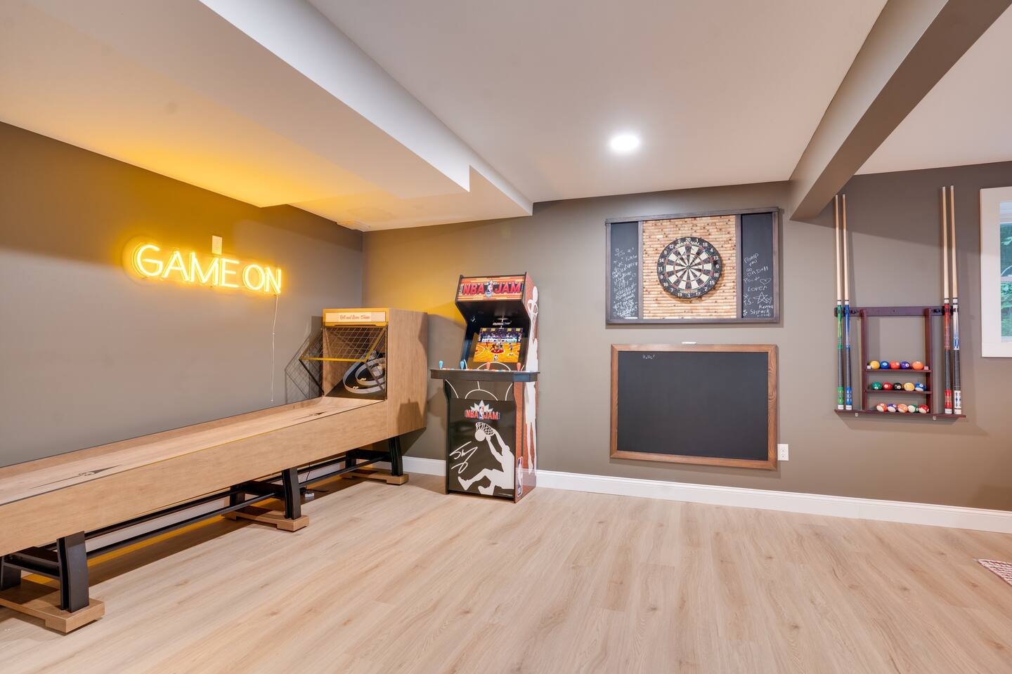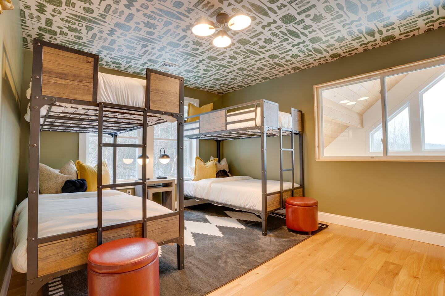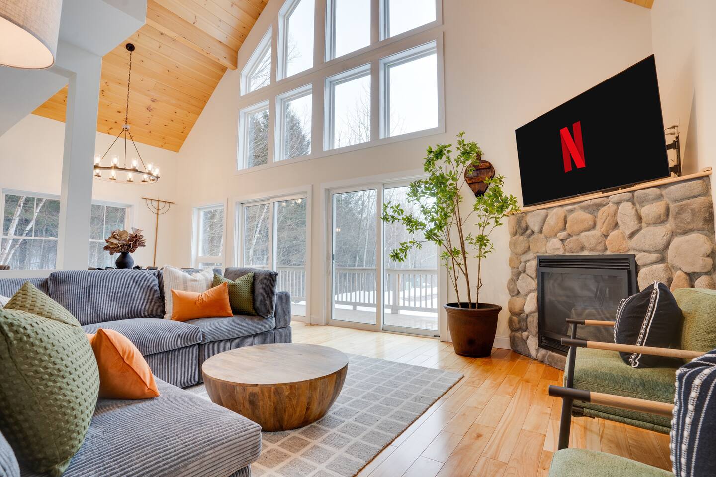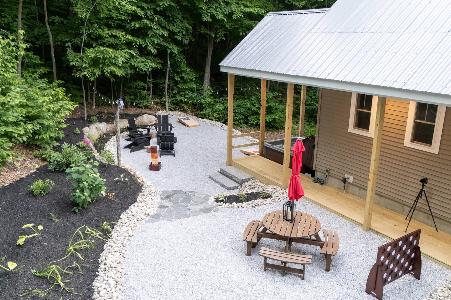 Escape to our stunning 2,200 sq/ft mountainside retreat in Bartlett, NH, perfect for an amazing vacation. Nestled on a private acre with seasonal mountain views, this spacious house comfortably accommodates up to 10 guests and offers both solitude and proximity to downtown Bartlett/Conway and top attractions! - BEDROOM 1 (Primary, Main Floor) - * Plush king-sized bed * 2024 Smart TV * Full body mirror * Full ensuite bathroom - BEDROOM 2 (2nd Floor) - * Plush king-sized bed * 2024 Smart TV * Full body mirror * Shared hallway bathroom - BEDROOM 3 (2nd Floor) - * Two twin-over-twin metal bunk beds (Built sturdy and can accommodate children or adults) * 2024 Smart TV * Full body mirror * Shared hallway bathroom - BEDROOM 4 (Basement) - * Full-size sofa bed * 65ā Smart TV * Full ensuite bathroom - GAMEROOM (Basement) - * Sauna * Massage chair * Pool table * Arcade games (NBA Jam, PacMan, Nintendo Classic) * Skee-ball * Dartboard - CHEFāS KITCHEN - * Electric range & plenty of cooking space * Fully-equipped * Large Fridge * High-End Stainless Appliances * Tons of Cabinetry * Countertop with Seating for 3 * Dining Room Table Seating for 8 * A Keurig & a filtered coffee maker - LIVING ROOM - * 65ā Smart TV * Lots of natural lighting * Cozy sectional couch * Kitchen and dining area with vaulted ceiling and direct access to the main deck - OUTDOOR FRONT DECK - * Lounge couch with many chairs * Grill * Mountain View - OUTDOOR SIDE DECK/BACKYARD - * Private Hot-Tub * Fire Pit w/Adirondack chairs * XL Jenga game * XL Connect 4 Game * Ladder Golf * Cornhole * Outdoor dining * String lights for added ambiance - ADDITIONAL INFO - * You can find the fire extinguisher in the kitchen. * Pack n Play / High Chair Included * In unit washer and dryer Experience an unforgettable vacation with a perfect blend of comfort, entertainment, and relaxation!