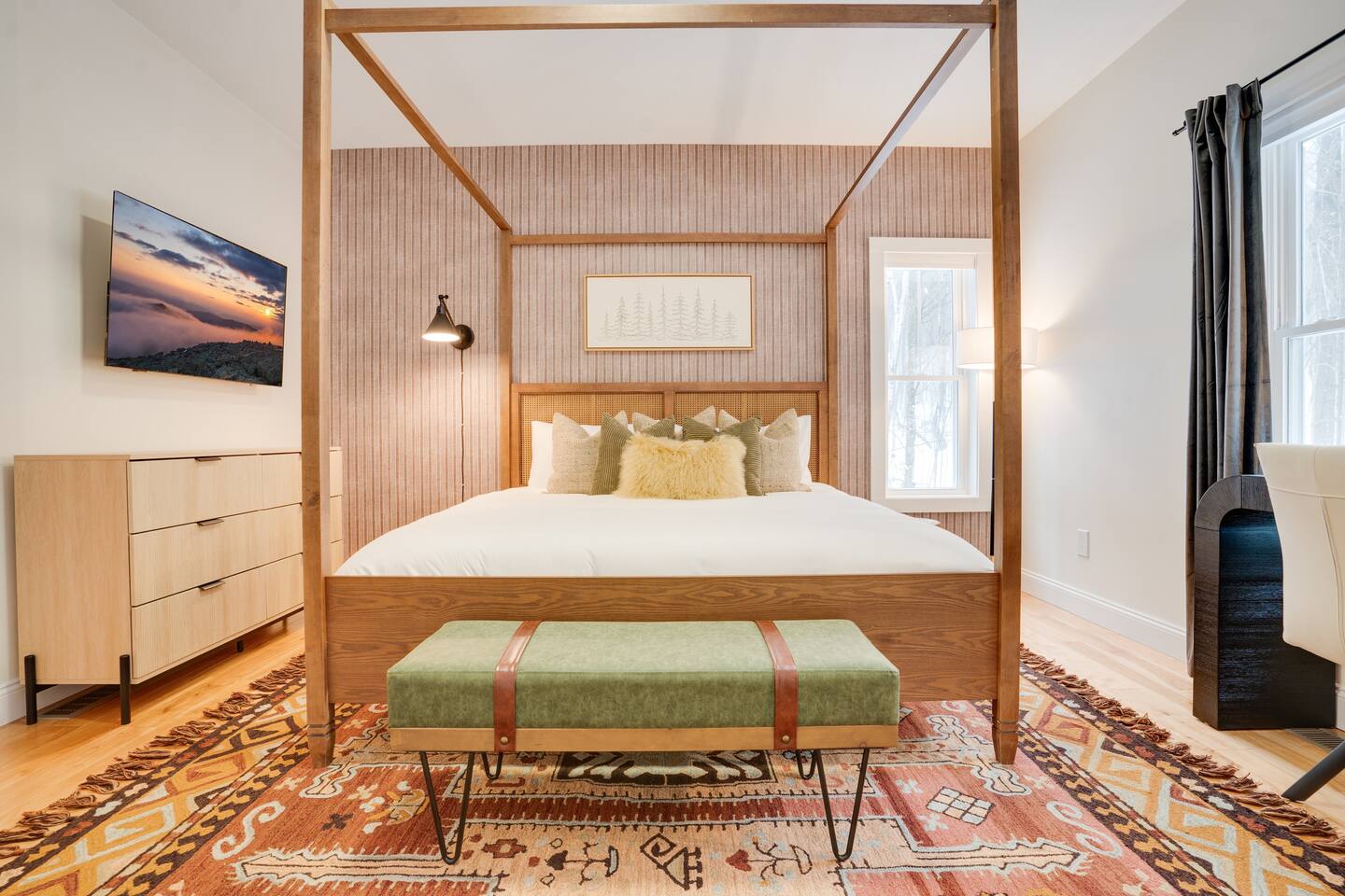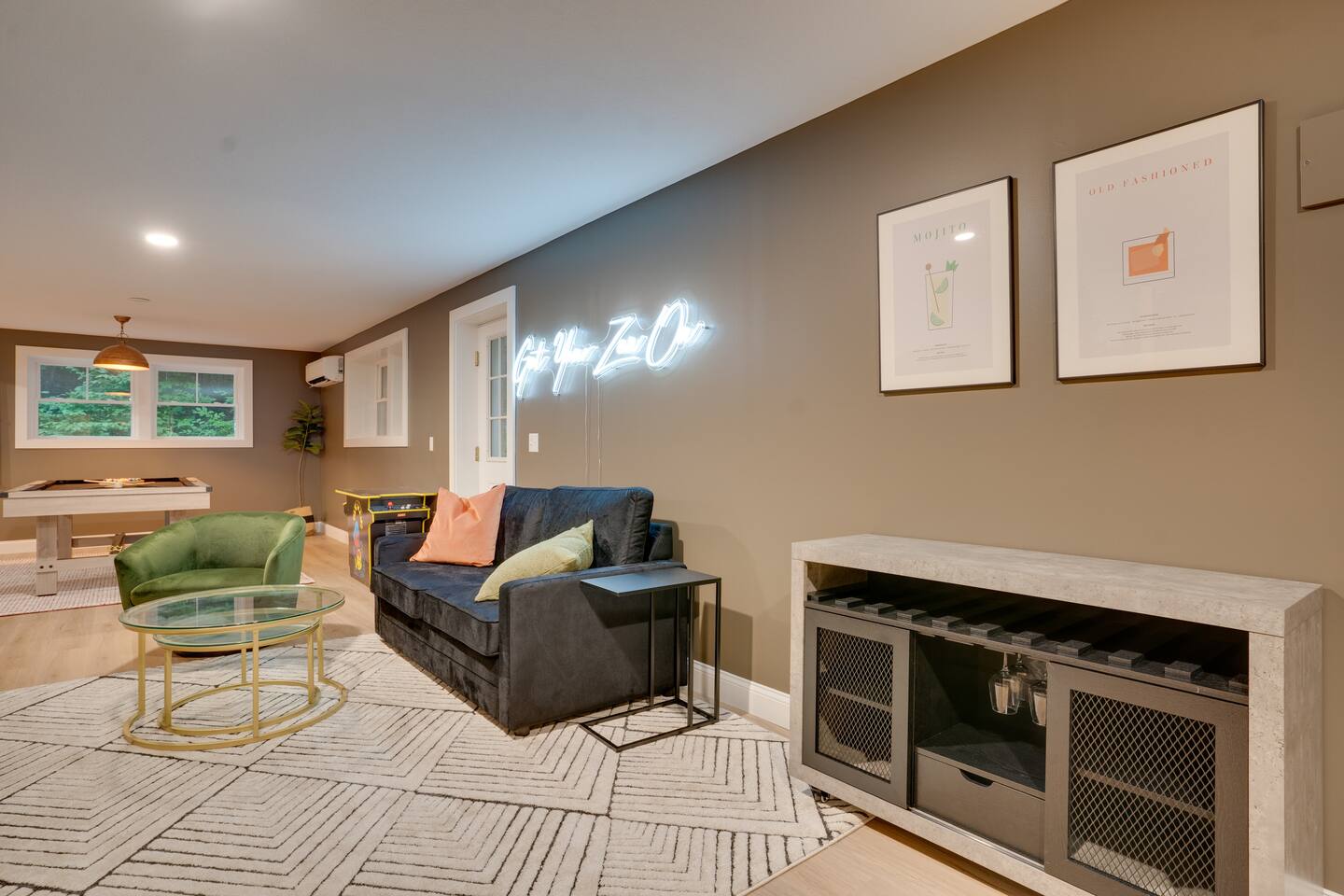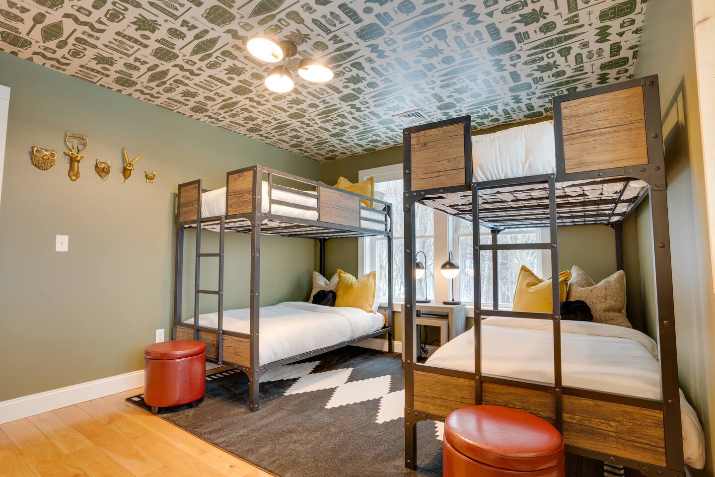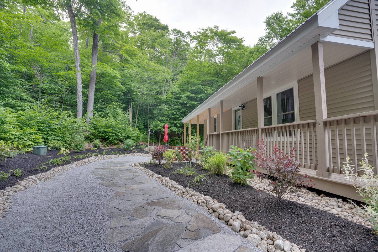 Escape to our stunning 2,200 sq/ft mountainside retreat in Bartlett, NH, perfect for an amazing vacation. Nestled on a private acre with seasonal mountain views, this spacious house comfortably accommodates up to 10 guests and offers both solitude and proximity to downtown Bartlett/Conway and top attractions! - BEDROOM 1 (Primary, Main Floor) - * Plush king-sized bed * 2024 Smart TV * Full body mirror * Full ensuite bathroom - BEDROOM 2 (2nd Floor) - * Plush king-sized bed * 2024 Smart TV * Full body mirror * Shared hallway bathroom - BEDROOM 3 (2nd Floor) - * Two twin-over-twin metal bunk beds (Built sturdy and can accommodate children or adults) * 2024 Smart TV * Full body mirror * Shared hallway bathroom - BEDROOM 4 (Basement) - * Full-size sofa bed * 65ā Smart TV * Full ensuite bathroom - GAMEROOM (Basement) - * Sauna * Massage chair * Pool table * Arcade games (NBA Jam, PacMan, Nintendo Classic) * Skee-ball * Dartboard - CHEFāS KITCHEN - * Electric range & plenty of cooking space * Fully-equipped * Large Fridge * High-End Stainless Appliances * Tons of Cabinetry * Countertop with Seating for 3 * Dining Room Table Seating for 8 * A Keurig & a filtered coffee maker - LIVING ROOM - * 65ā Smart TV * Lots of natural lighting * Cozy sectional couch * Kitchen and dining area with vaulted ceiling and direct access to the main deck - OUTDOOR FRONT DECK - * Lounge couch with many chairs * Grill * Mountain View - OUTDOOR SIDE DECK/BACKYARD - * Private Hot-Tub * Fire Pit w/Adirondack chairs * XL Jenga game * XL Connect 4 Game * Ladder Golf * Cornhole * Outdoor dining * String lights for added ambiance - ADDITIONAL INFO - * You can find the fire extinguisher in the kitchen. * Pack n Play / High Chair Included * In unit washer and dryer Experience an unforgettable vacation with a perfect blend of comfort, entertainment, and relaxation!